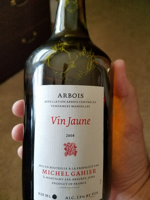 None of those original varietals are around today but I do have a bottle of Vin Jaune Savignan Blanc from the Jura region of France, the oldest varietal that has not been genetically modified. That's how well-liked it has been for 900 years, even the French couldn't find fault in it.