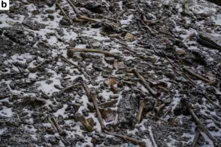 Image of disarticulated skeletal elements scattered around the Roopkund Lake site. Photo by Himadri Sinha Roy.