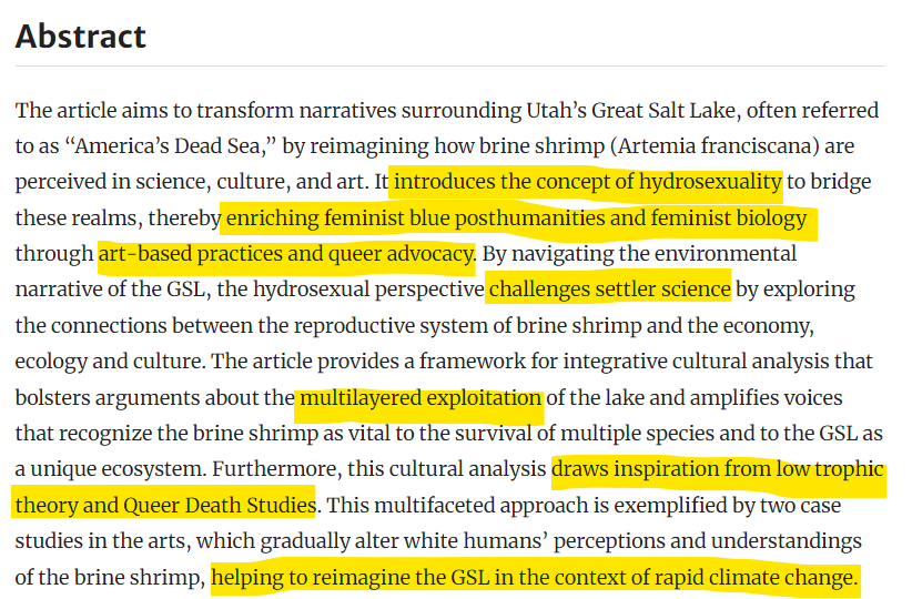 I didn't even know what "settler science" was until I read this, I assumed no one did a spell check before publishing because she also claims shrimp reproduce using "pathogenesis", but then I did a search and it means that science is not science, it is only an opinion framed through colonialism. So if native Americans never learned to read or write 2,000 years after the rest of the world, they were still doing science, and it was probably better than Newton or Darwin, because they were white dudes.