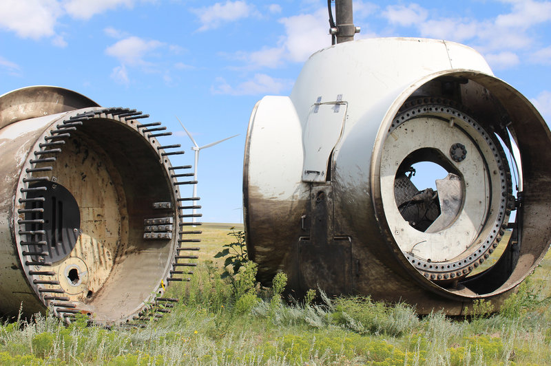 The blades are made of fiberglass and glue and have no value anywhere except for windmills - and then only as long as that one is in commission. Since they are 100 to 300 feet long, they are notoriously difficult and expensive to transport so first they have to be cut up before being hauled away using specialized equipment on emissions-belching trucks to a landfill.