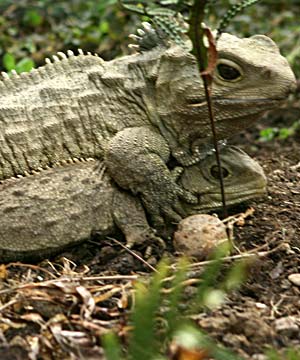 The tuatara, Sphendon punctatus, is found only in New Zealand and is the only surviving member of a distinct reptilian order Sphehodontia that lived alongside early dinosaurs and separated from other reptiles 200 million years ago in the Upper Triassic period.