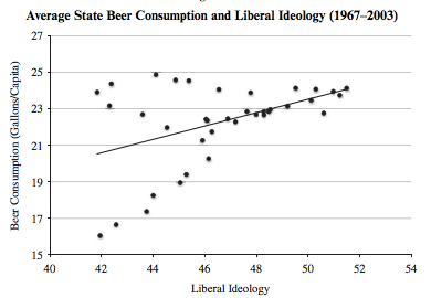 Yakovlev and Guessford analyzed almost 60 years of longitudinal data and found that the more liberal a state becomes, the more its consumption of hard alcohol and beer rises. It's the weekend so I am not even going to question that methodology.