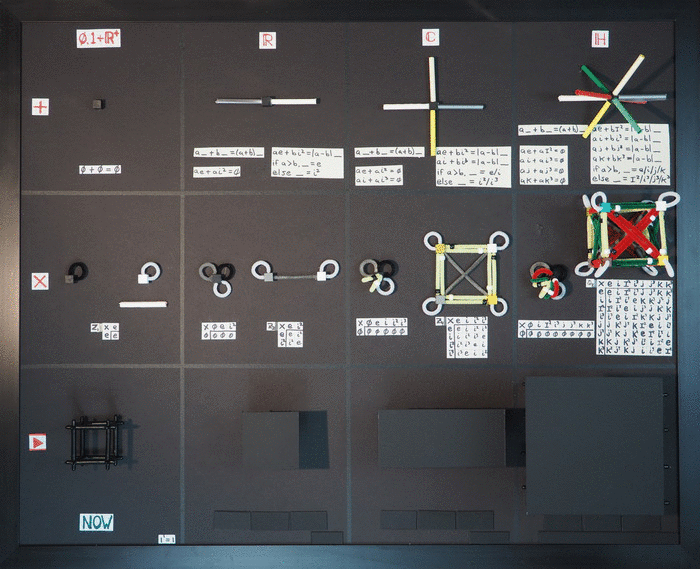 There is no space to this animation. Something is either there or not. The moment marked as now should feel completely arbitrary because it is. Now is also brief in this context. You need to watch for it as it blinks by. An essential quality of time numbers is that any point can be designated as now, the additive inverse of zero.