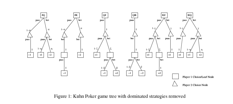 Yesterday I posted the rules of the very cool Kuhn poker. Here's optimal play: