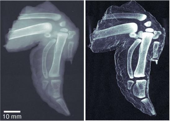 Unlike traditional x-ray images, which show a simple absorption contrast, dark-field images capture the scattering of the radiation within the material itself, exposing subtle inner changes in bone, soft tissue, or alloys. The overall clarity of the images is striking. The improved sensitivity in measuring bone density and hairline fractures could help diagnose the onset of osteoporosis. Because cancer or plaque cells scatter radiation slightly differently than normal cells, dark-field x-ray images can also be used to explore soft tissue, providing safer early diagnosis of breast cancer or the plaques associated with Alzheimer’s disease.