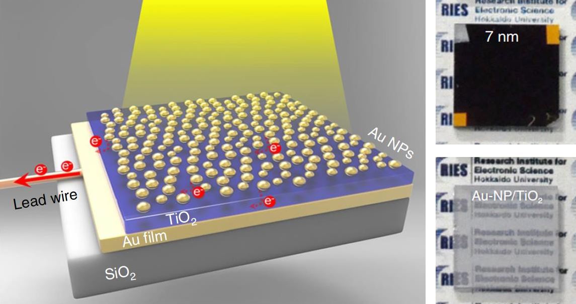When gold nanoparticles absorb light, the additional energy triggers electron excitation in the gold, which transfers electrons to the semiconductor. The light energy conversion efficiency is 11 times higher than those without light-trapping functions. The boosted efficiency also led to an enhanced water splitting: the electrons reduced hydrogen ions to hydrogen, while the remaining electron holes oxidized water to produce oxygen — a promising process to yield clean energy.