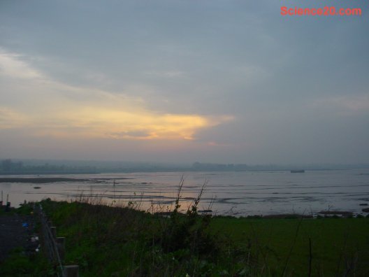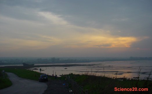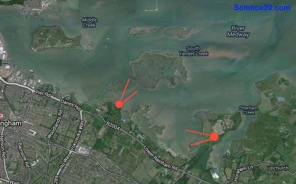 The photos below were taken today near Gillingham, Kent beside the Medway estuary between 4:30 and 5:30 local time (BST = UTC + 1). They show no trace of the yellow dust of April 2010. The yellow which does show is from the low evening sun. The Google maps segment below shows in red where the photos below it were taken and the general direction.