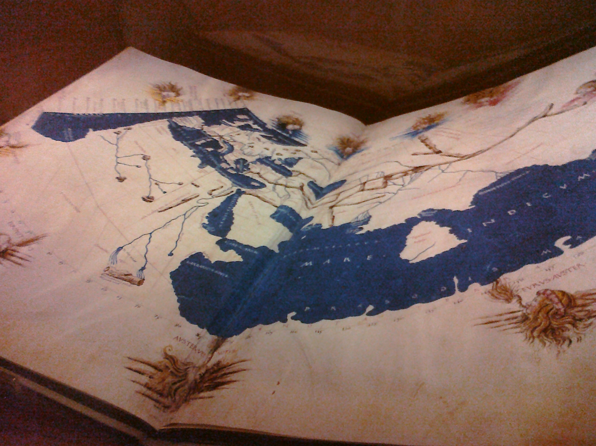 A nautical atlas. Fifteen watercolor plates portray the nautical maps and planispheres as well as the zodiac, armillary sphere and parts of the globe.