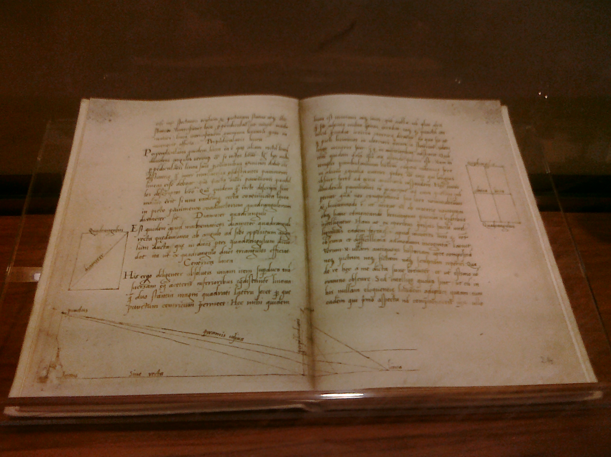 A codex on linear perspective, by Alberti, illustrating the best way for drawing in correct perspective by means of the intersection of the visual pyramid.