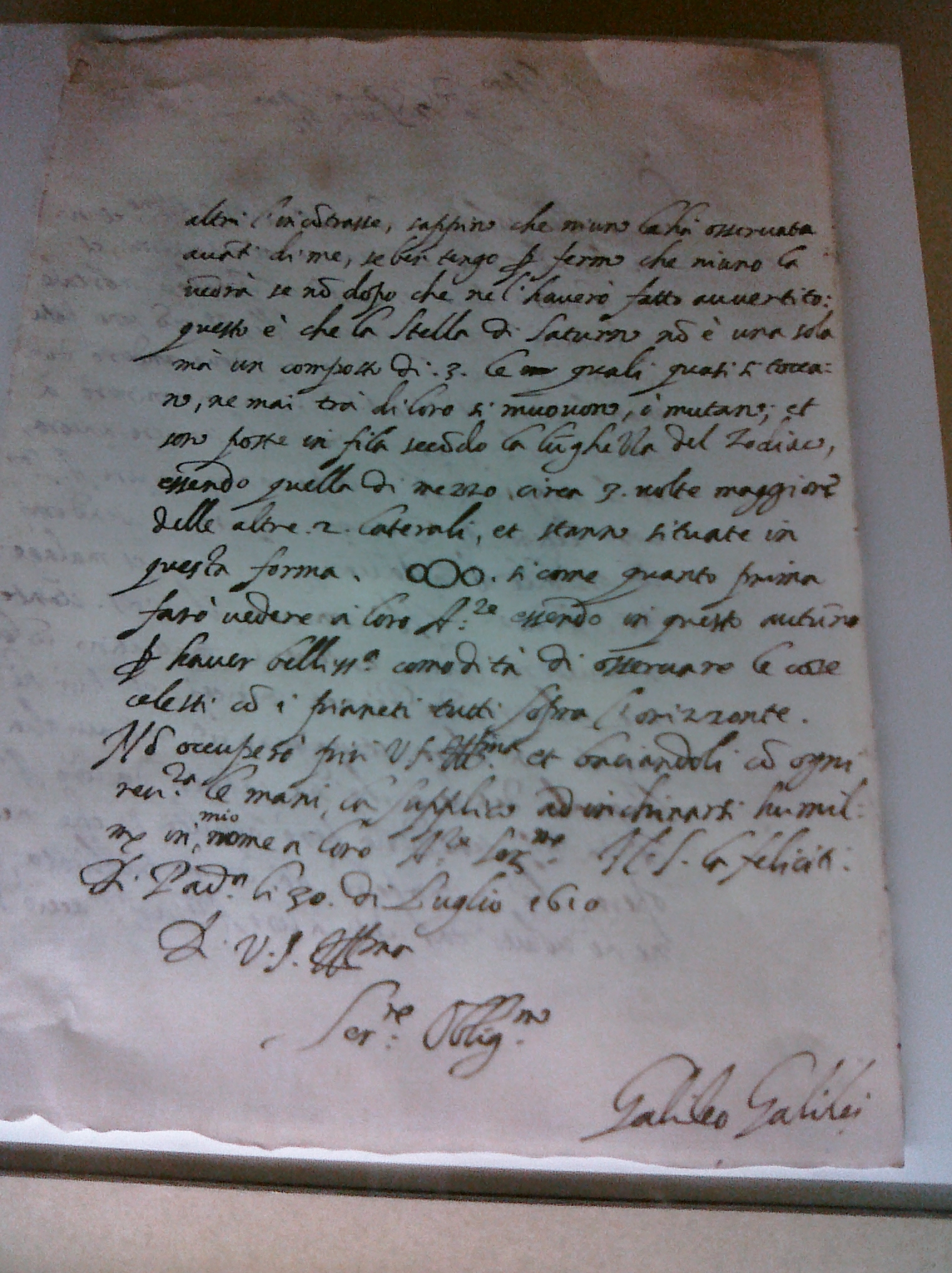 Letter to the Secretary of State in Tuscany describing his observations of Saturn.