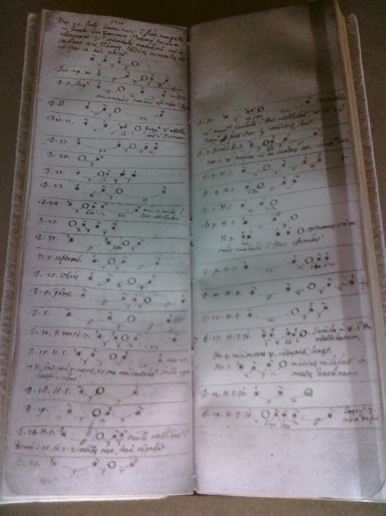 Diary of observations of Jupiter’s satellites, used to determine orbital periods and radii.