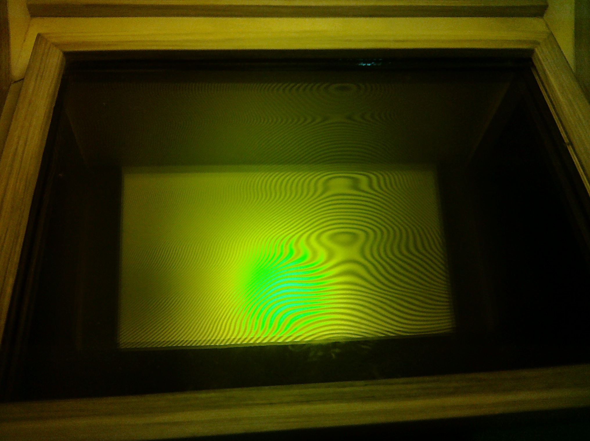 Just for fun - two plates under light of a sodium lamp showing light and dark “fringes” caused by the interference of the light waves. Each fringe represents a “step” 0.0003 mm high.