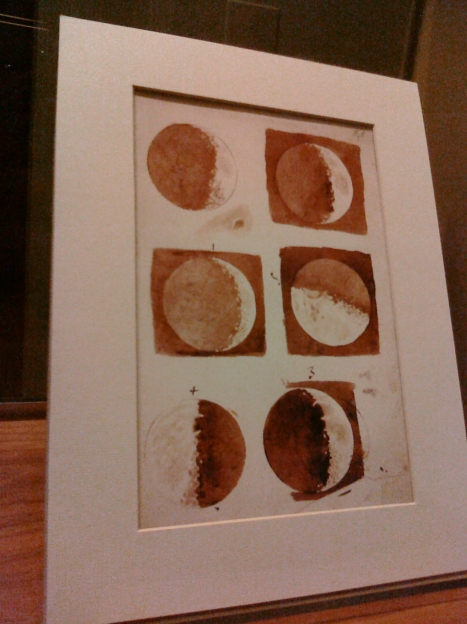 Galileo also worked on celestial bodies closer to home. He found that our moon has a pockmarked surface. Below is a watercolor Galileo did showing the phases of the moon, as well as the many "cavities" present on the surface.