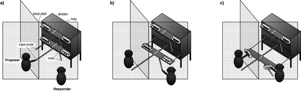 In a study reported in Science on October 5th, the researchers confronted our closest living relatives, chimpanzees, to a simplified version of the ultimatum game. The proposer would propose an offer of raisins to the responder by partially pulling out a tray of raisins as far as he could. If the responder accepted the division of raisins, he would pull the tray the rest of the way and the two would be able eat. However, if the responder did not like what he saw, he would not pull the tray and neither of them would get anything to eat.