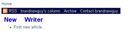 Now when you are logged in the, the left Sidebar shows new menu options; Write Article is below the Front Page and your username, My Account and My Column menus appear in the user menu.