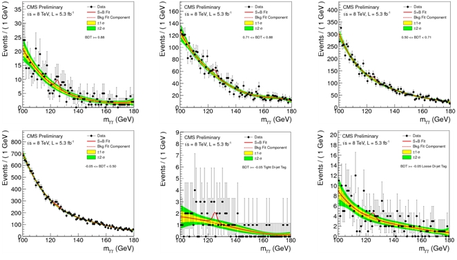 So let us go to the Higgs to two photons search. The mass distributions are the ones shown below: