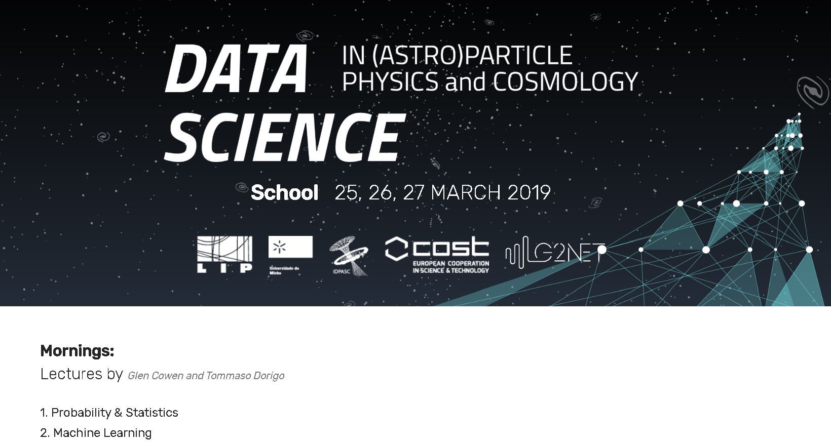 On March 25 to 27 will be held the school titled "Data Science in (astro)particle physics and cosmology", in Braga (Portugal). The lecturers are prof. Glen Cowan (RHUL), who will cover Statistics, and myself, who will cover topics in Machine Learning. I thought I would mention this here, as for me it is a novelty - in the past years I have often given lectures in advanced statistics topics at various Ph.D. schools around the world, but I never focused explicitly and solely on ML.